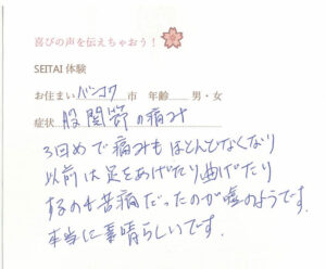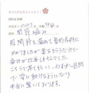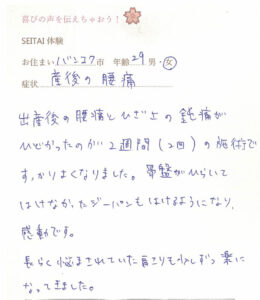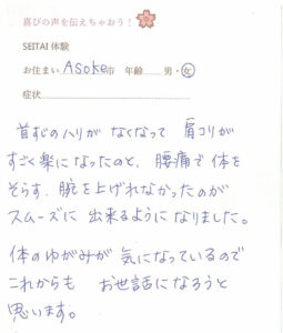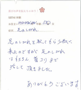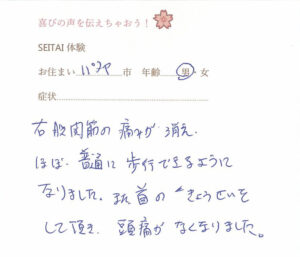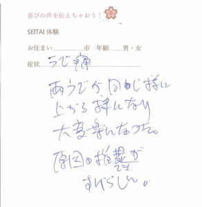 お客様の声(てしま整体の時のもの)