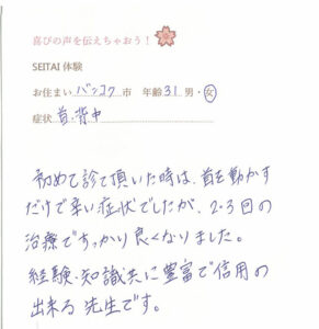 タイ・バンコクで整体と言えば手島健次