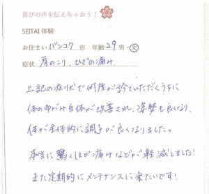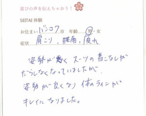 20年近く肩こりに悩んでいらっしゃた方の声